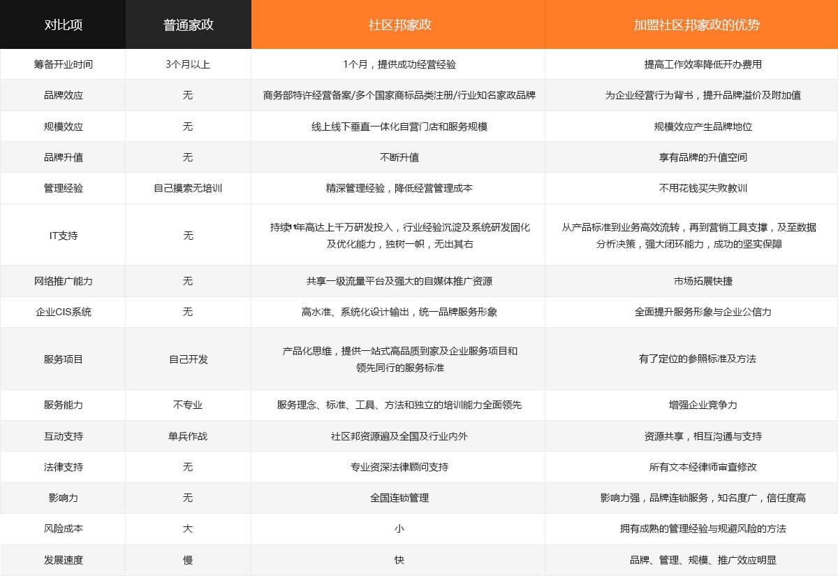 社區(qū)邦與其他家政品牌的區(qū)別